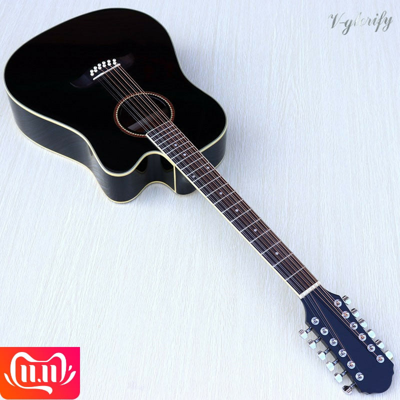 12 string sunburst color acoustic electric guitar 41 inch with electric EQ tuner function acoustic guitar